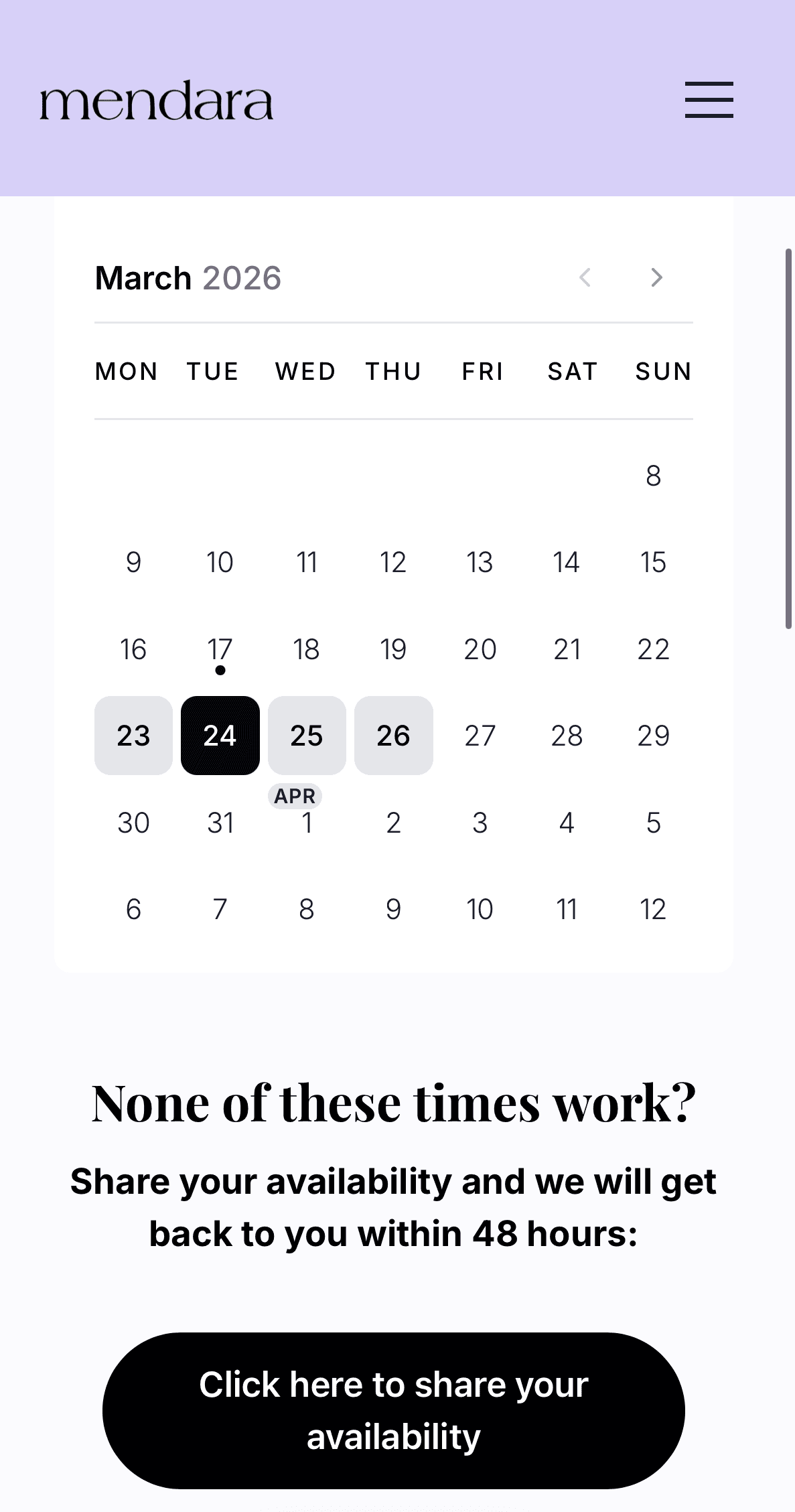 If for whatever reason, the session wasn't valuable for you, just email hello@mendaracare.com and we will refund you in full. No questions asked.